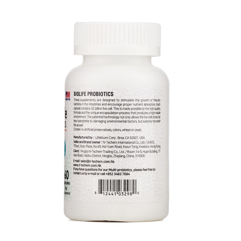Multi-Biolife 成人益生菌經由美國高規格的工廠製造,每個膠囊包含320億益生菌,有效促進腸道中益生菌的生長並增強營養吸收能力。高品質的配方和特別的封裝技術,不僅使活細胞不易受到破壞性環境因素的影響,更有效地延長了產品的保質期